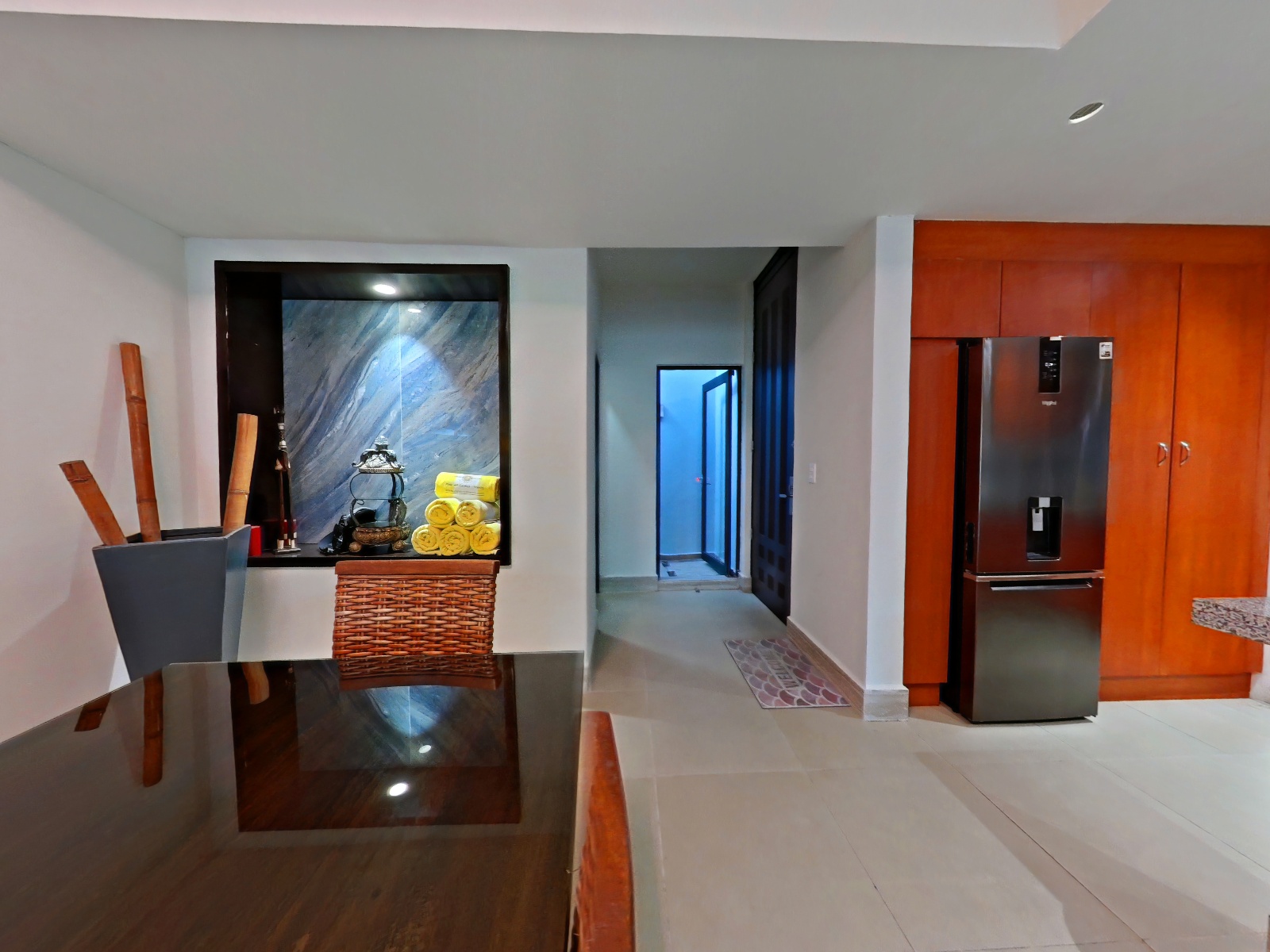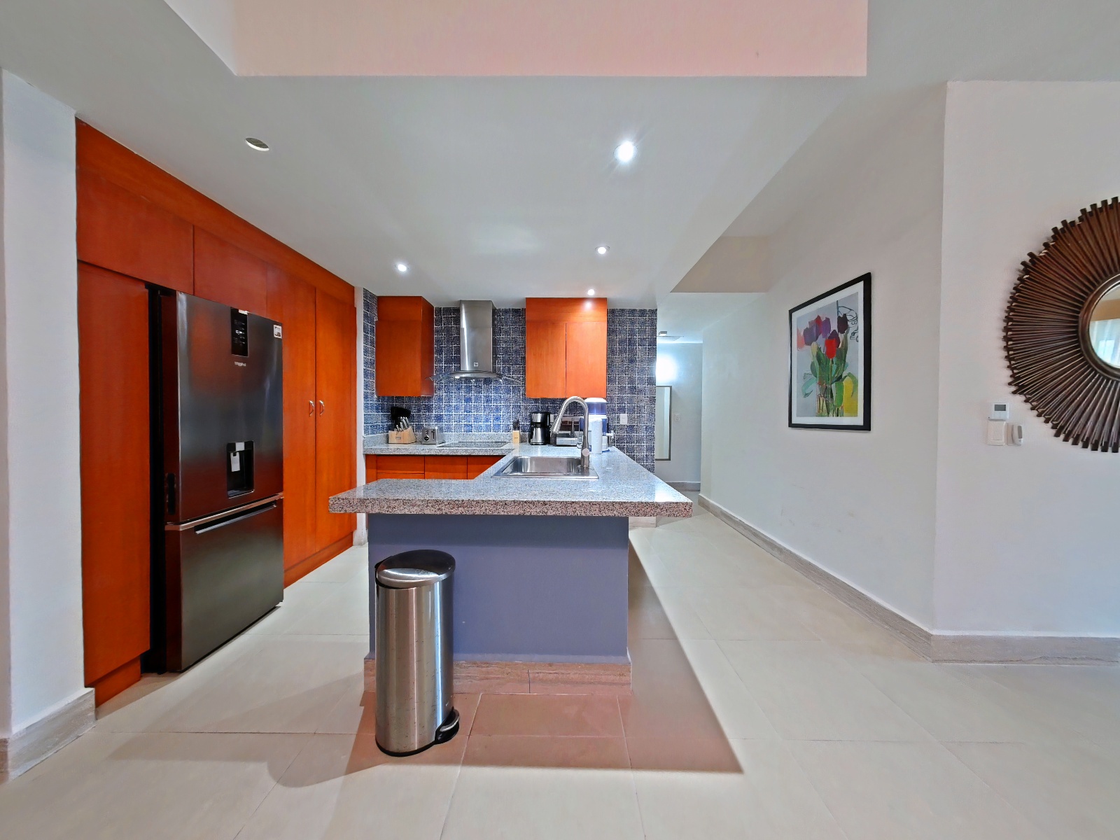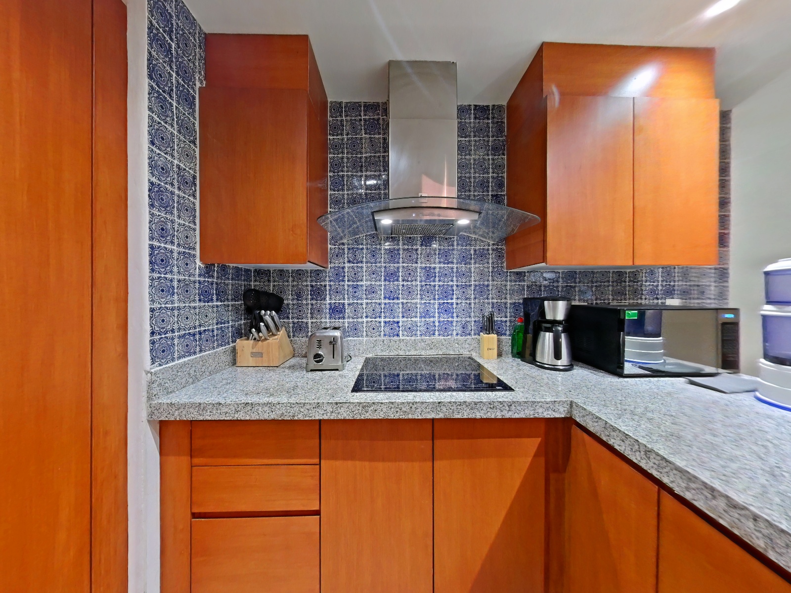 - Marble floors - Refrigerator - Coffee maker - Blender - Microwave - Toaster oven - Stove - Glassware and dishes - Fully equipped kitchen - Oil and salt (upon request) - Special utensils (upon request) - Wine glasses (upon request)